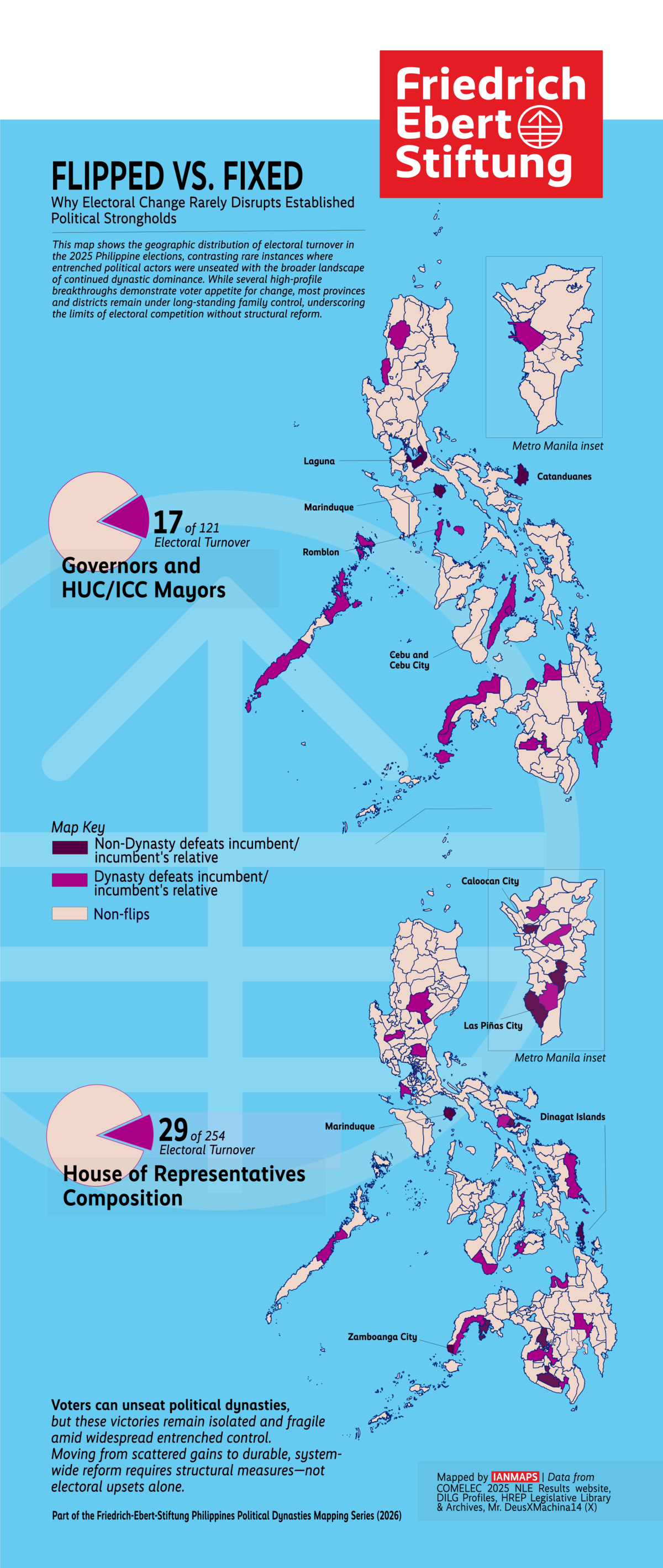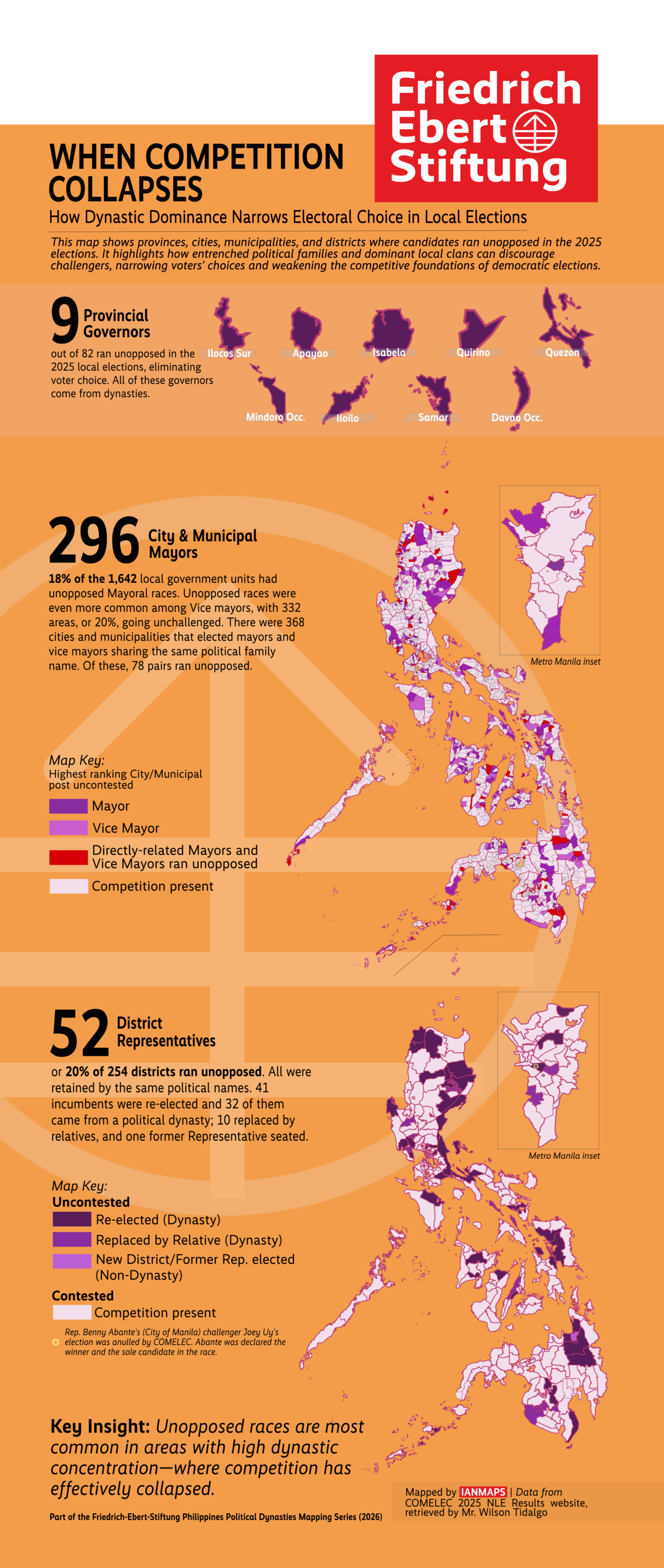 This article was authored by Monica Ang-Tan, with specialized data retrieval and geospatial mapping provided by Ian Senoc. This collaboration is part of the Friedrich-Ebert-Stiftung Philippines’ ongoing commitment to documenting and analyzing democratic transitions and the evolving political landscape of the Philippines.