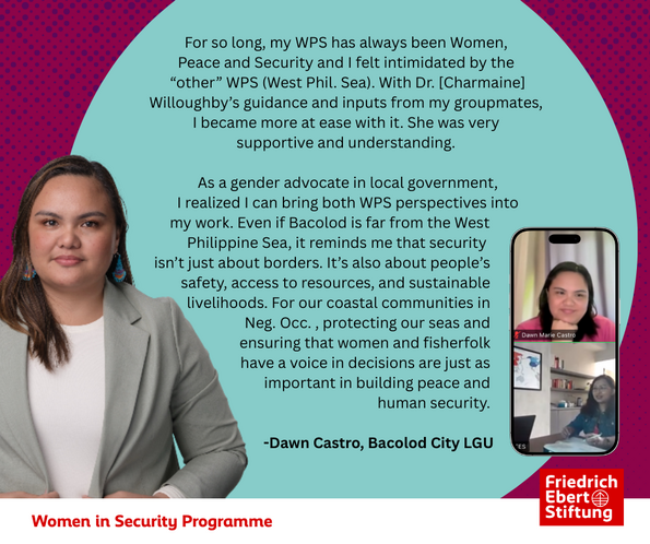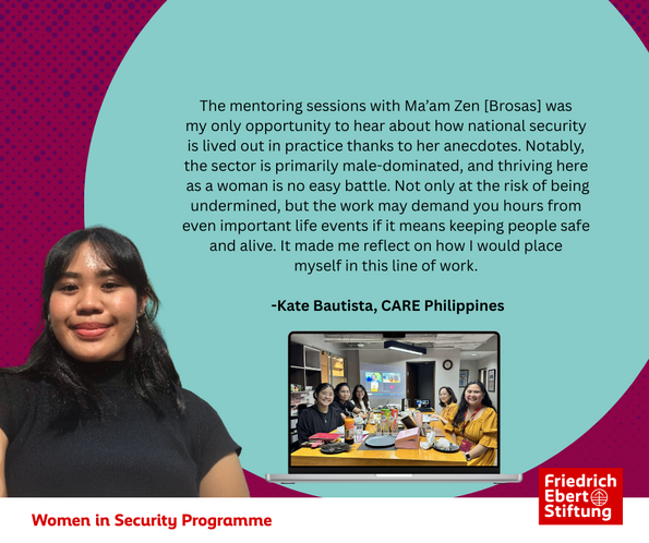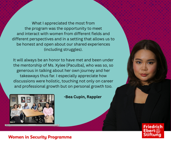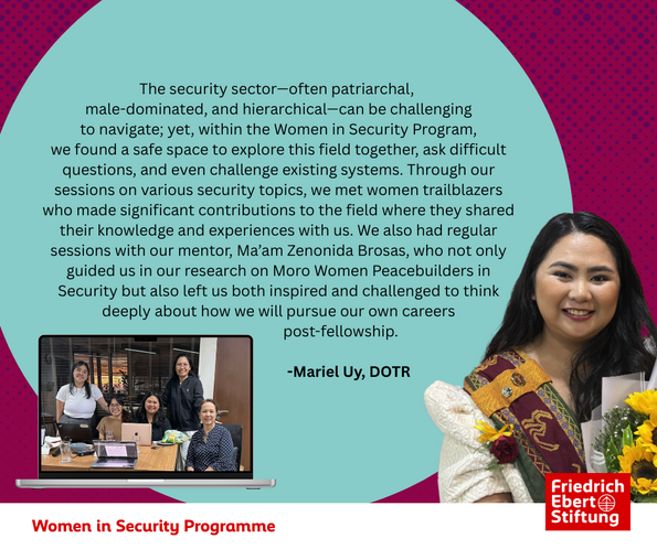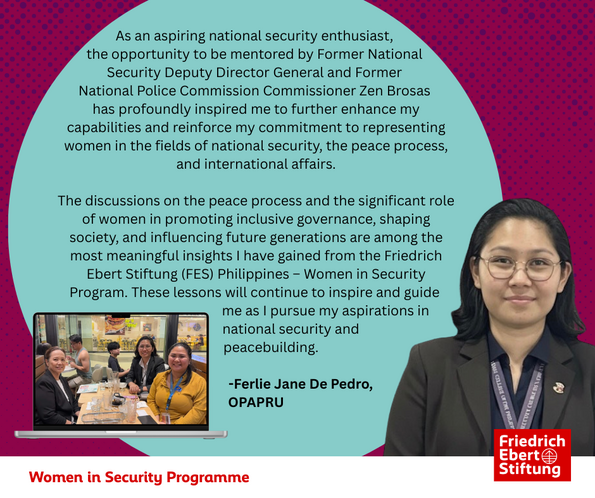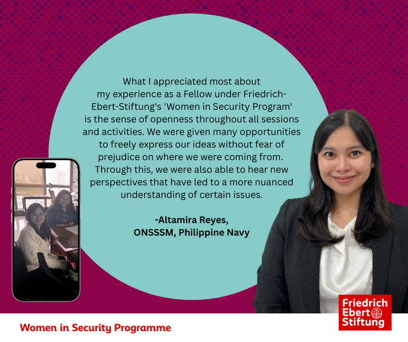 The Women in Security Program is a flagship initiative of Friedrich-Ebert-Stiftung (FES) Philippines designed to empower the next generation of Filipina leaders in the fields of security, foreign policy, and governance.